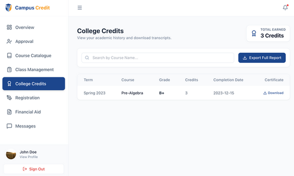 Campus Credit doesn’t replace your SIS or scheduling tools. It gives you one clean source of truth for dual enrollment applications, approvals, rosters, and grades—then lets you move that data into Banner, Colleague, PeopleSoft, or any SIS your college already uses.
